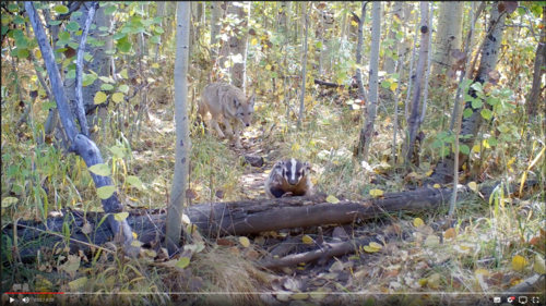 While the American badger is an aggressive animal with few natural enemies, it is still vulnerable to other species in its habitat. Predation on juvenile specimens by golden eagles (Aquila chrysaetos), coyotes (Canis latrans) has been reported. Bears (Ursus spp.) and gray wolves (Canis lupus) occasionally kill adult American badgers, while cougars (Puma concolor), according to a 2019 study, apparently are the main predators of adults, hunting them much more frequently than the other carnivorans, with a documented case where the badger is one of the main prey of a radio-collared cougar.