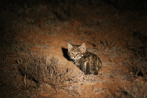 The black-footed cat is nocturnal and usually solitary, except when females care for dependent kittens.