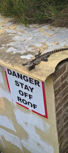 Australian water dragons are prey to carnivorous birds, snakes (such as brown tree snakes, common death adders, lowland copperheads, red-bellied black snakes, and eastern brown snakes), cats, dogs, and foxes. Nestlings and smaller juvenile water dragons are vulnerable to predation by kookaburras, currawongs, butcherbirds and other carnivorous birds. They are also prone to becoming road kill due to the attraction of warm bitumen and concrete for basking. Types of vegetation reportedly consumed include figs, lilly-pilly fruits, berries, and other fruits and flowers.