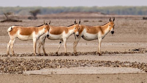 Asiatic wild asses are mostly active at dawn and dusk, even during the intense heat.