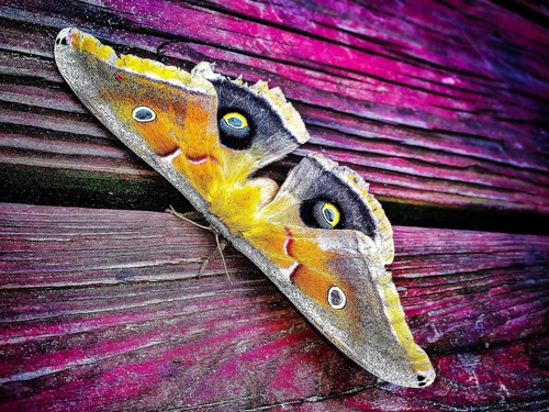 File:Polyphemus moth topside.jpg|Topside after falling off window