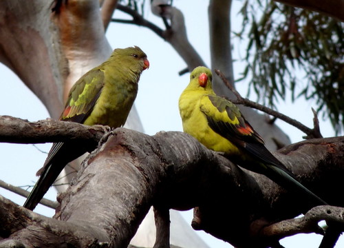 The regent parrot or rock pebbler is a bird found in southern Australia. It has predominantly yellow plumage with a green tail. The bird is found primarily in eucalyptus groves and other wooded areas of subtropical southwestern Australia, as well as in a smaller area of subtropical and temperate southeastern Australia. Seeds make up the bulk of its diet.