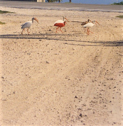 Scarlet ibis vagrants have been identified in Belize, Ecuador, and Panama; Aruba, Cuba, Dominica, Grenada, and Jamaica; sightings have even been made in the United States. However, virtually all modern occurrences of the species in North America have been introduced or escaped birds. In one notable example from 1962, scarlet ibis eggs were placed in white ibis nests in Florida's Greynolds Park, and the resulting population hybridised easily, producing "pink ibises" that are still occasionally seen.