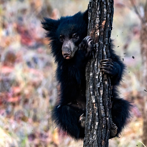 The sloth bear, also known as the Indian bear, is a myrmecophagous bear species native to the Indian subcontinent. It feeds on fruits, ants and termites. It is listed as vulnerable on the IUCN Red List, mainly because of habitat loss and degradation. It is the only species in the genus Melursus.